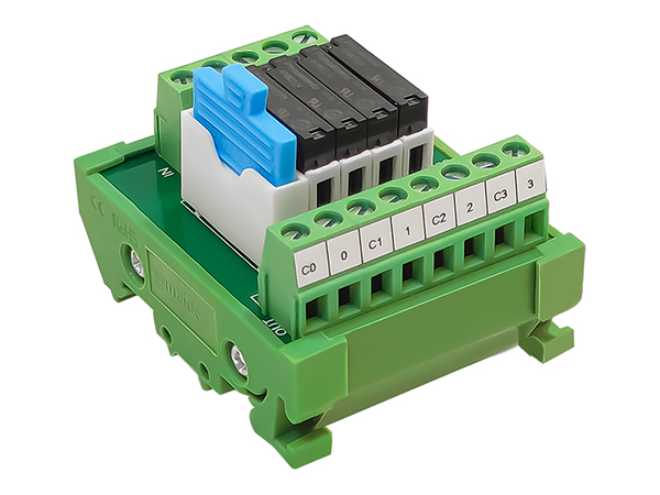 ④ 柵欄式端子輸出 ⑤4路繼電器模組,體積減小到最?、?采用LED動作顯示,各輸入輸出端狀態(tài) 一目了然