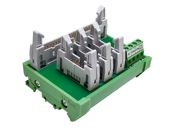 ④ 柵欄式端子輸出 ⑤4路繼電器模組,體積減小到最?、?采用LED動作顯示,各輸入輸出端狀態(tài) 一目了然